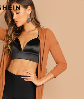 SHEIN Black Deep V Neck Bra Zipper Back Sexy Triangle Cup Wire Free Women Summer 2019 Solid Lingerie Bras